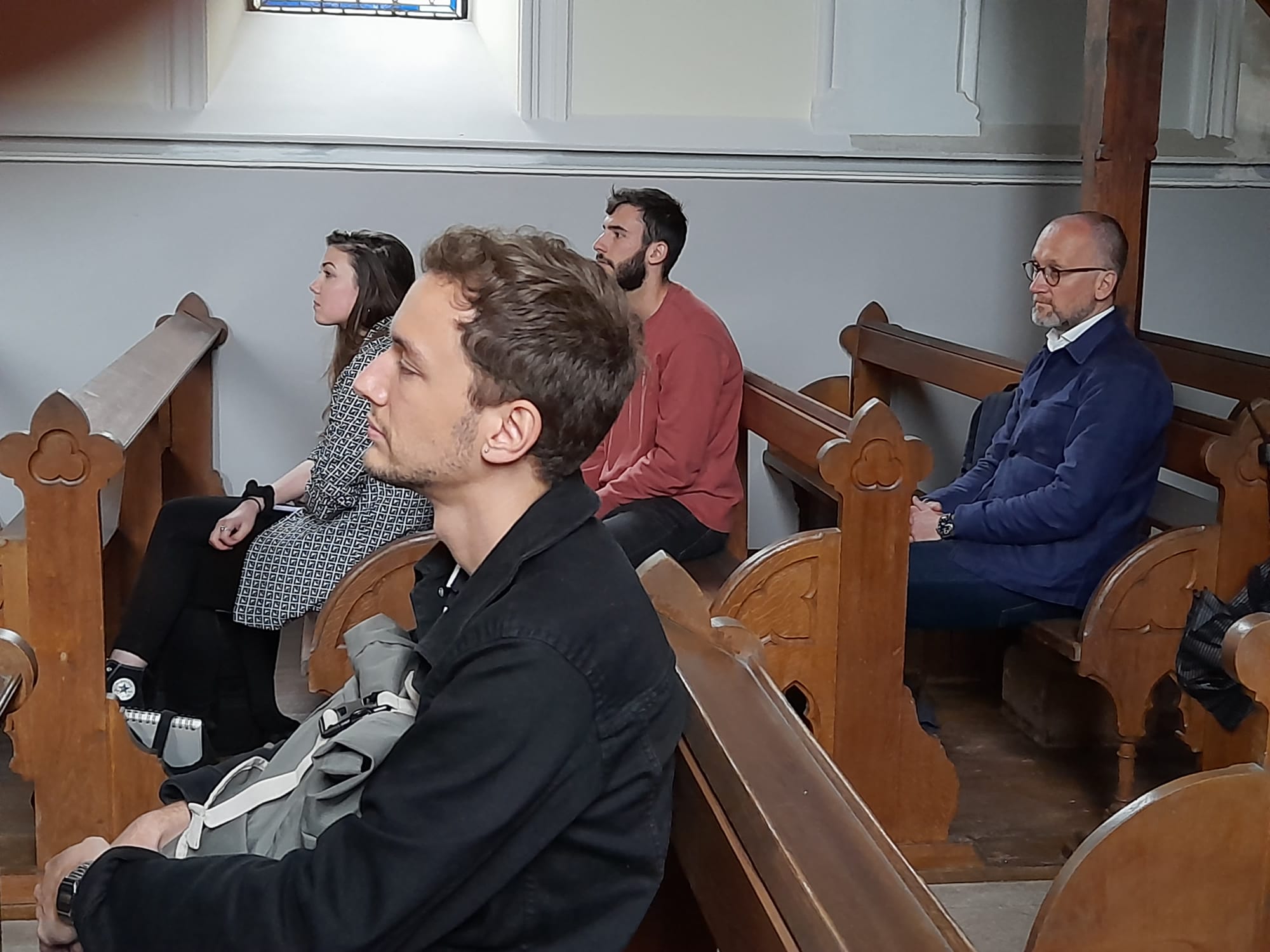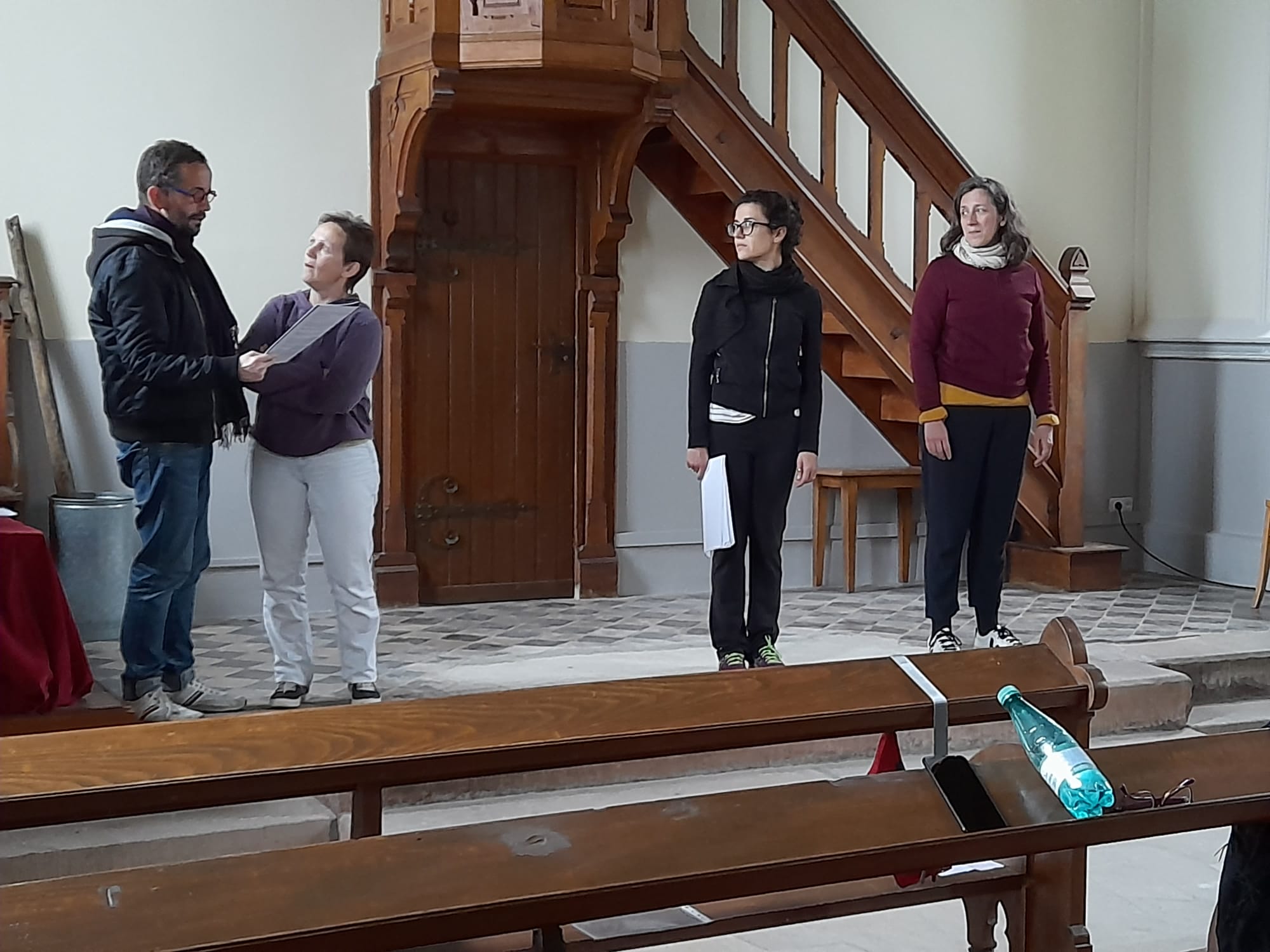 Avant de reprendre la route, les étudiants ont encore pu jeter un coup d’œil au temple, où VILLATHEATRE prépare son spectacle pour le samedi 25 juin à 20h.