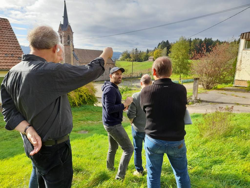 Le 18 et 19 octobre, nous avons lancé les études du projet architectural et financier du futur Climont avec l’équipe de maîtrise d’oeuvre dirigée par les architectes d’AJEANCE de Sélestat, que notre jury avait retenu parmi 2 autres candidats cet été. Deux jours pour arpenter le terrain, analyser les bâtiments, discuter fonctionnement, rénovation, construction, isolation, énergie, subventions, montage financier… Nous attendons les plans et le chiffrage pour fin de cette année !