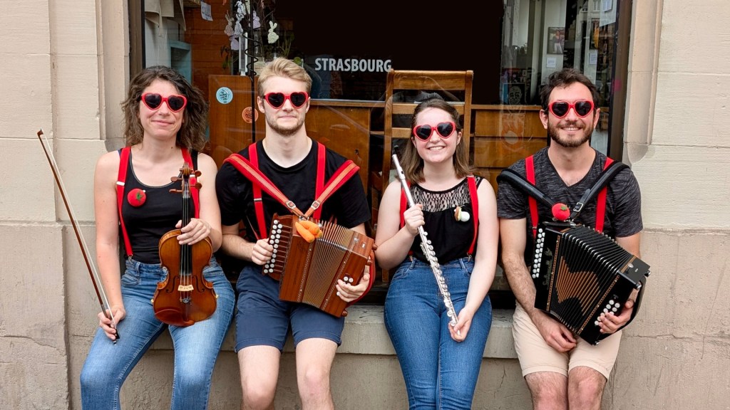 Le groupe est constitué de Quentin et Romain à l’accordéon diatonique, Caroline à la flûte traversière et Édith au violon.