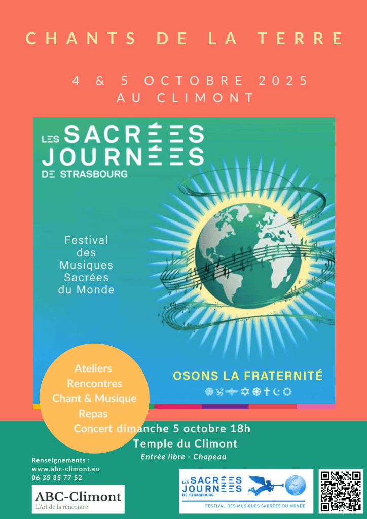 La planète vibre de toutes les musiques sacrées du monde. C’est ce que cette image nous dit : Autour de la Terre, la musique devient souffle, cercle, lumière. Elle révèle la part divine de l’humanité. Face aux fractures du monde, la musique sacrée est une réponse. Elle unit sans uniformiser. Elle éclaire sans dominer. Elle nous appelle à oser la fraternité.