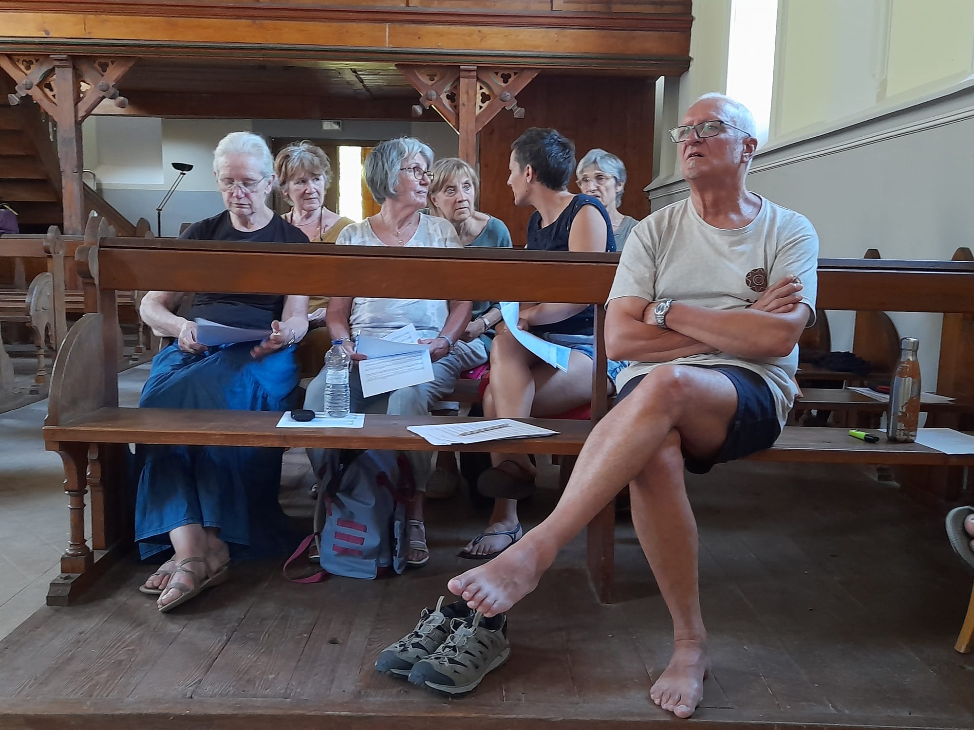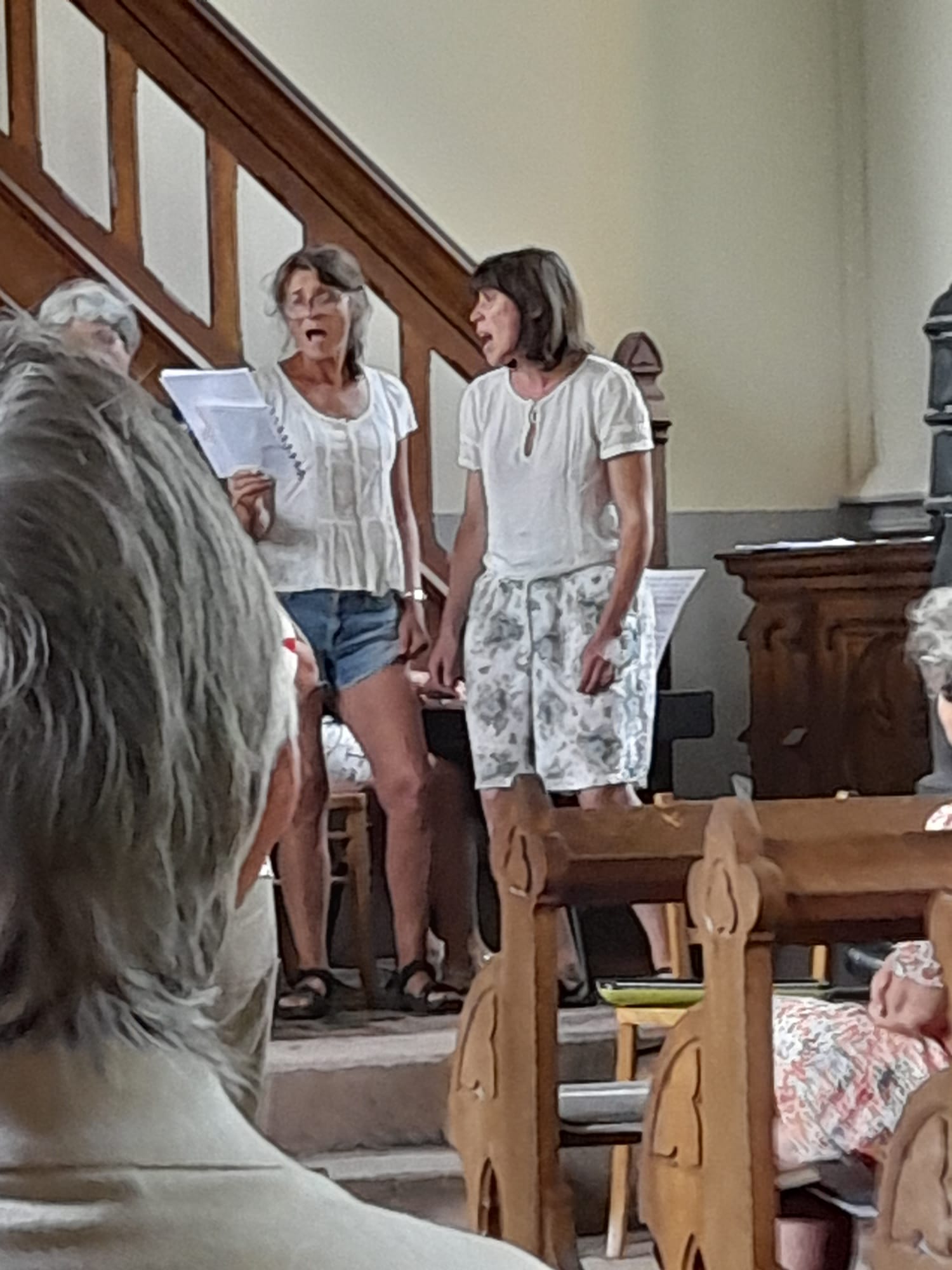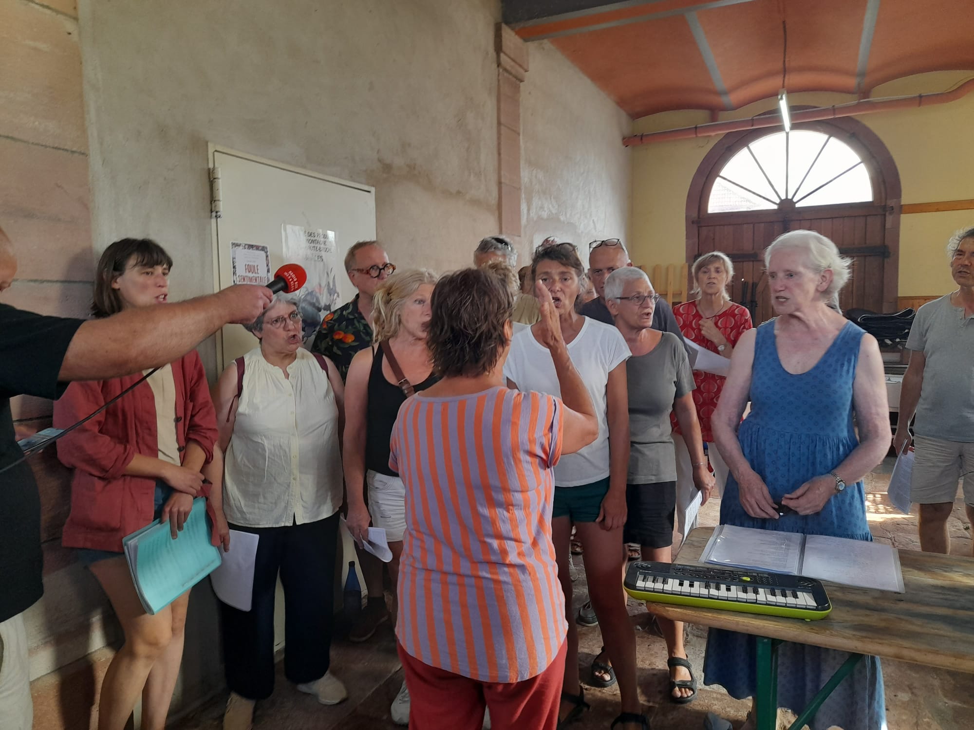 Venus de Belgique et de France, Mouchette et Juliette rassemblent les voix pour cette chorale éphémère en devenir. Travail d’écoute et d’attention lors des premières répétitions :