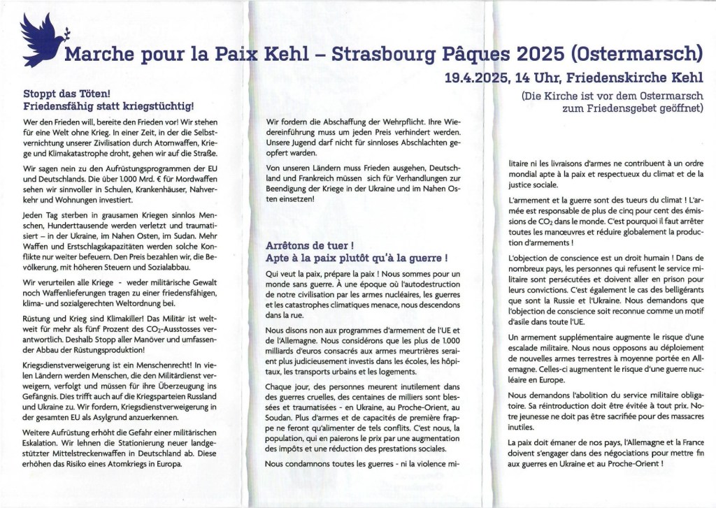 13h30 Temps de prière pour la paix à la Friedenskirche de Kehl