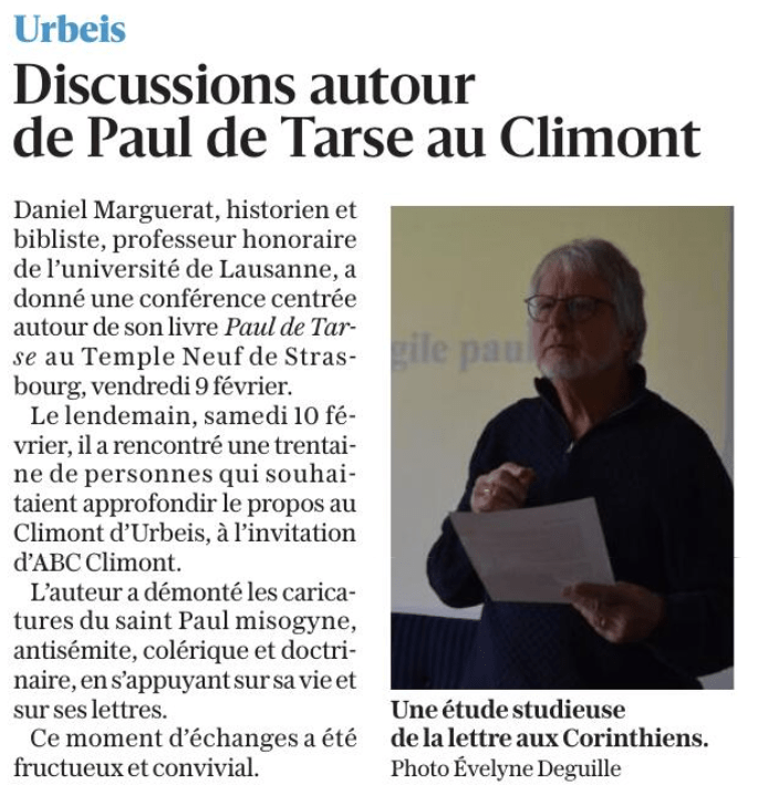 Après l’avoir accueilli pour son Vie et destin de Jésus de Nazareth il y a trois ans, la Médiathèque protestante du Stift et le Temple Neuf s’associent de nouveau, en compagnie de la librairie Oberlin et d’ABC-Climont, pour vous proposer une rencontre-dédicace avec Daniel Marguerat, historien et bibliste, professeur honoraire de l’Université de Lausanne, autour de son dernier livre Paul de Tarse, l’enfant terrible du christianisme (Seuil, 2023).