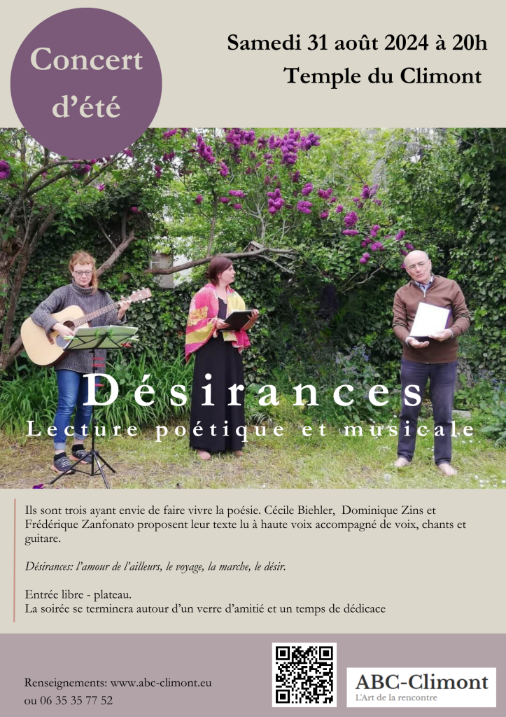 en résidence au Climont du 2 au 4 décembre 2024 Mercredi 4 décembre 20h Concert au Temple du Climont