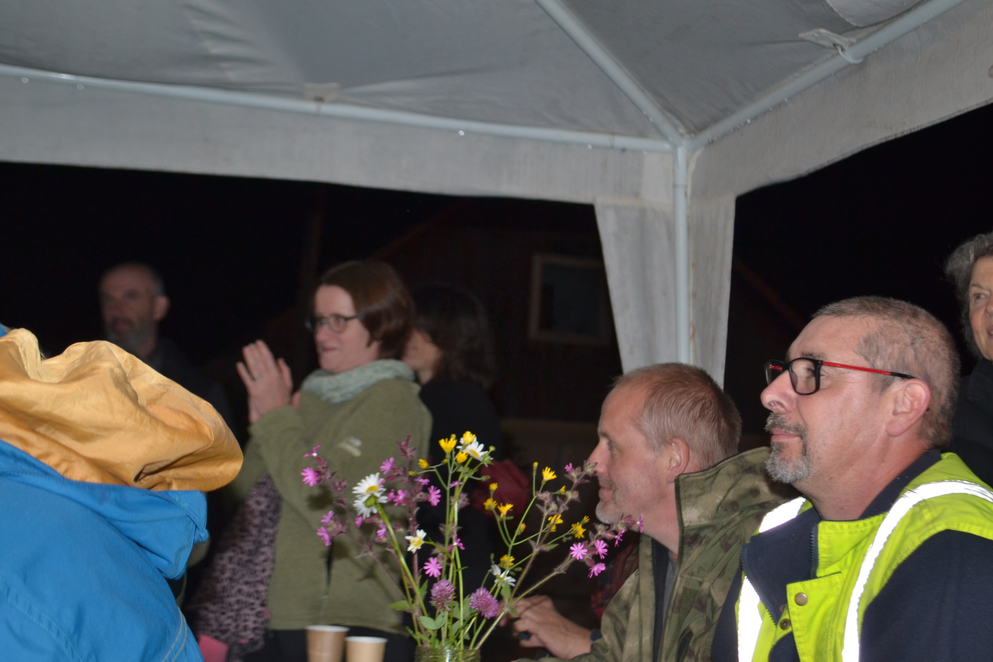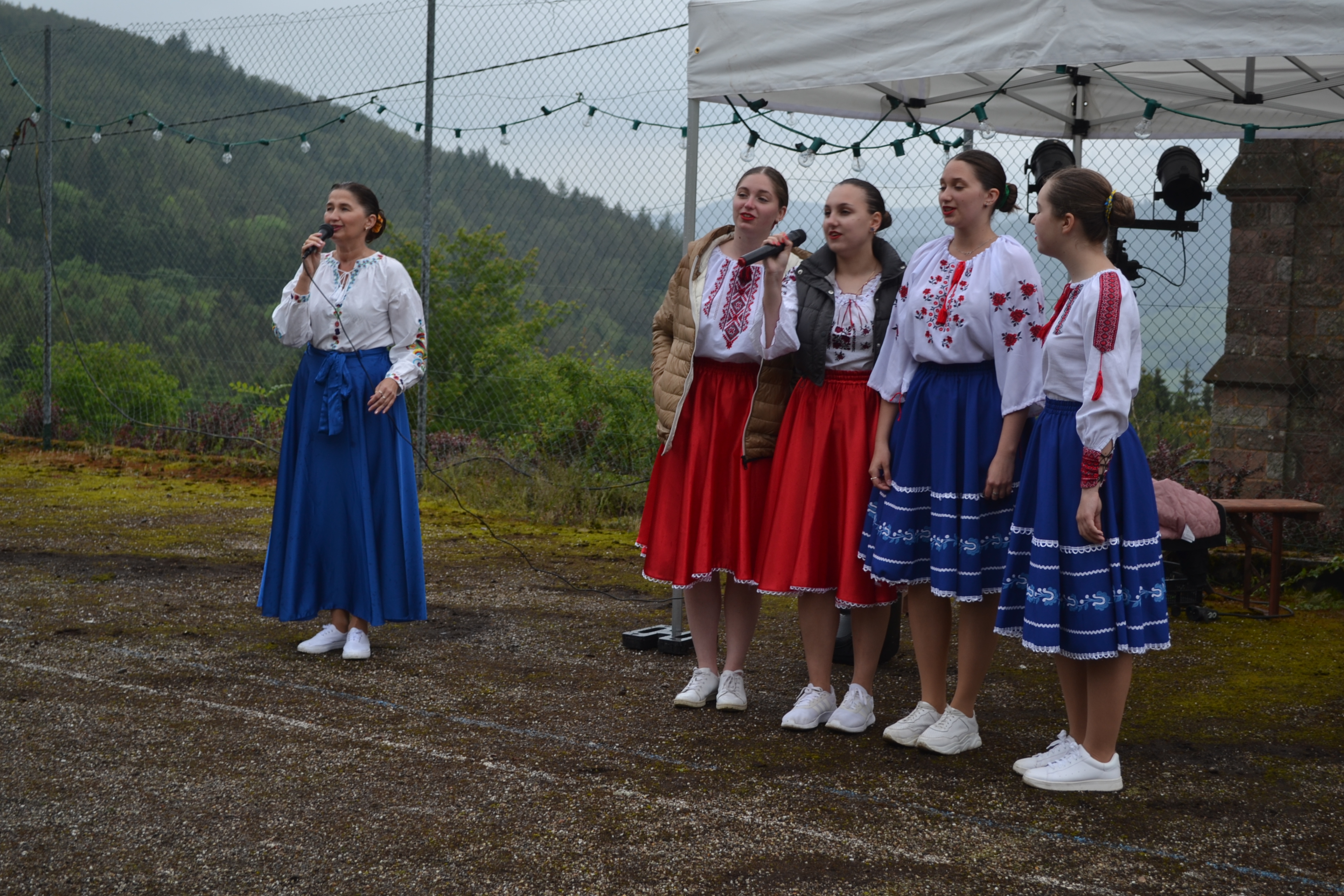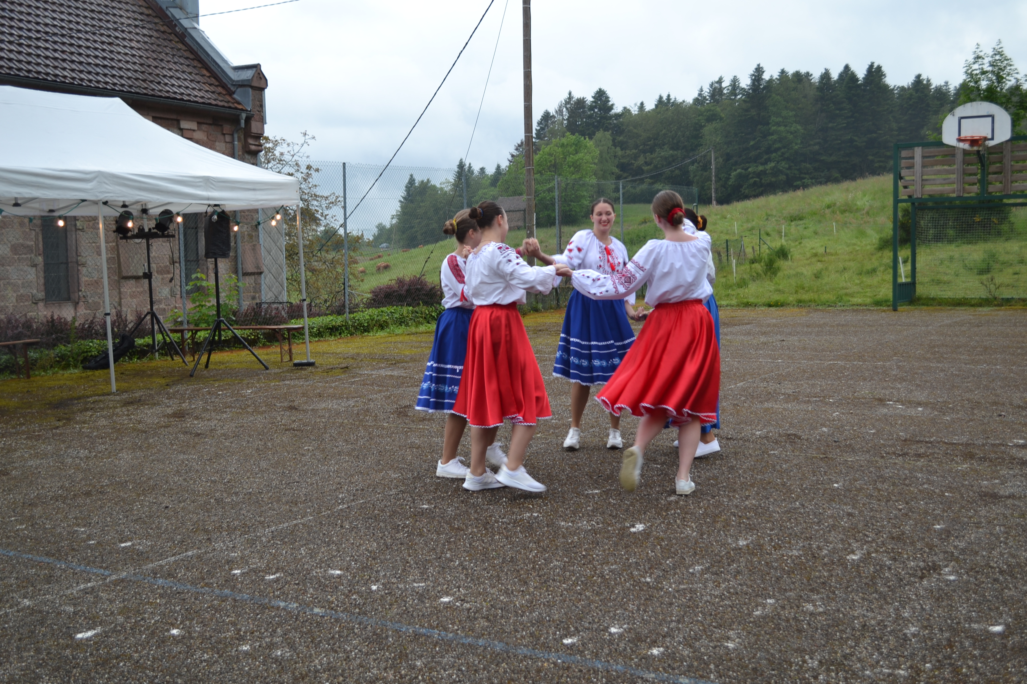 Nos invitées surprise nous amènent en Ukraine avec des danses et chant folkloriques. Le public les applaudit bien à l’abri sous les tentes.