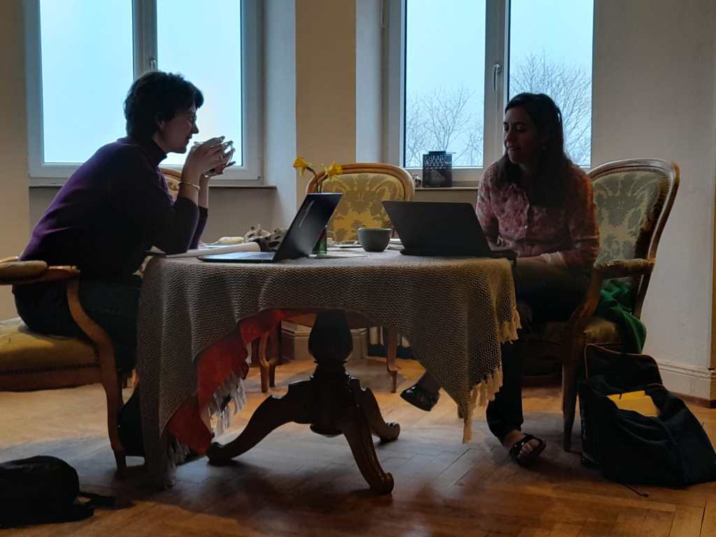 Sandrine Pirès et Emma Doude van Troostwijk de la Compagnie Le Gourbi Bleu étaient au Climont pour une résidence d’écriture du 9 au 13 février.